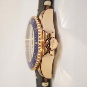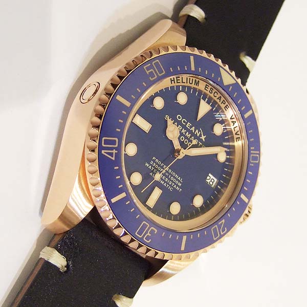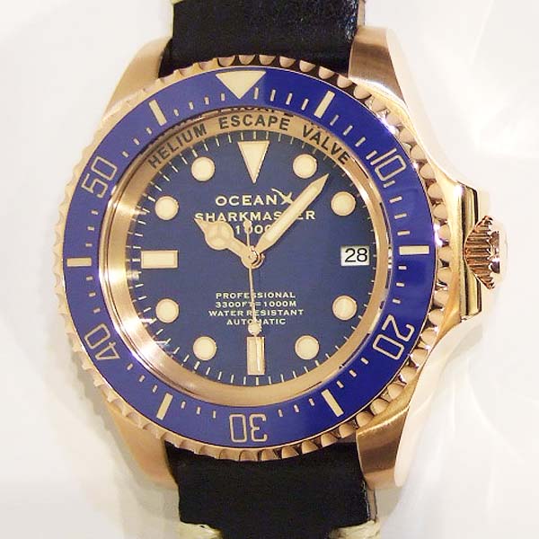 HARKMASTER 1000 潛水腕錶/ 型號:SMS1015/ 採 SEIKO NH35 自動上鏈機芯,動力儲存約:41小時, 24 顆紅寶石,28800vph/ 藍色錶盤/ 具時ˋ分ˋ秒指示,3點方位日期顯示窗/ 冷光藍夜光立體時標及標誌線時標/ 可單向旋轉藍色陶瓷潛水錶圈,可計算入水時間/ 手錶尺寸: 44 mm,厚:17.1mm/ 藍寶石水晶玻璃/ 全錶 316 L 鋼材質(PVD玫瑰金色),錶殼左側設有排氦氣閥/ 搭配原廠黑色牛皮錶帶及一般式穿扣/ 防水 1000 米.