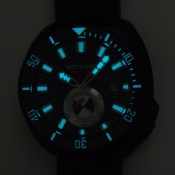 簡述: NETHUNS 義大利品牌 AQUA 300米 潛水腕錶/ 型號:AS331/ 採日本 Miyota 8218 自動上鏈機芯/ 機芯為:21石ˋ動力儲存約:40小時/ 具時ˋ分ˋ秒( 6 點方位恆動秒針盤,上有潛水員圖案)指示, 3 點方位日期窗/ 黑色面盤,有鯨魚ˋ鯊魚ˋ...等暗紋/ 立體時標(具夜光效果)/ 鋼材質錶殼,錶冠於 4 點方位/ 銀色邊劍型指針(具夜光效果)/ 黑色陶瓷可單向旋轉潛水外圈,可計算入水時間/ 手錶尺寸: 44mm錶徑/ 藍寶石水晶玻璃鏡面/ 霧面鋼錶底蓋,刻有序號/ 搭配 22mm 原廠黑色橡膠錶帶/ ㄇ字型一般鋼質穿扣/ 防水:300米.
