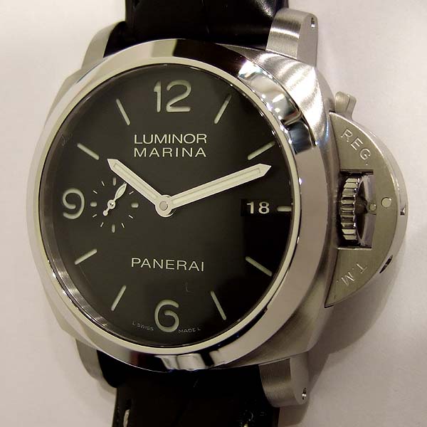 簡述: Luminor 1950 Marina 3 Day 自動腕錶/ 型號:PAM-00312/ P 字頭限量3500只(可快拆式錶帶)/ 採用Panerai P.9000 自動上鏈機芯/ 機芯為:13 3/4 法分ˋ 28石ˋ 每小時擺率 28800次ˋ Incabloc防震裝置ˋ 動力儲存 3 日/ 具時ˋ分ˋ小秒針ˋ日期顯示/ 錶殼44mm 316L 拋光及霧鋼材質/ 黑色錶面(三明治錶盤)/ 夜光時標及指針/ 藍寶石水晶鏡面/ 防水達300米/ ㄇ型錶扣/ 附原廠全新未使用黑色鱷魚皮錶帶.