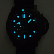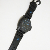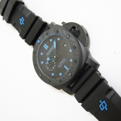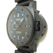 簡述: Luminor 1950 Submersible 3 Days Automatic/ 型號:PAM01616/ V 字頭限量製作 2000 只/ 採用沛納海P.9010自動上鏈機芯,機芯完全由沛納海自製ˋ 具72小時動能儲存(3 天)/ 具時ˋ分ˋ小秒指示, 日期顯示視窗/ 專利防水錶冠護橋裝置/ 錶徑:47mm,Carbotech碳纖維複合物料錶殼及錶冠護橋 / 黑色塗層鈦金屬錶背 / 磨砂鈦金屬錶扣,配搭黑色類鑽碳鍍模外層/ 單向逆時針方向旋轉潛水計時錶圈,可計算潛水時間刻度以分鐘為單位的固定爪/ 黑色面盤/ 夜光指針與時標/ 藍寶石水晶鏡面,厚度 4 毫米,抗炫光塗層/ 防水300米/ 附原廠折紋黑色橡膠錶帶及黑色牛皮原廠皮帶/ 大型ㄇ形穿扣.