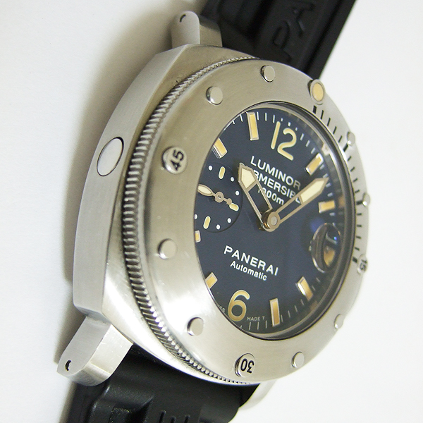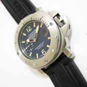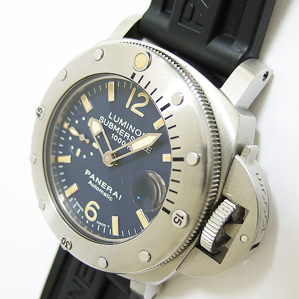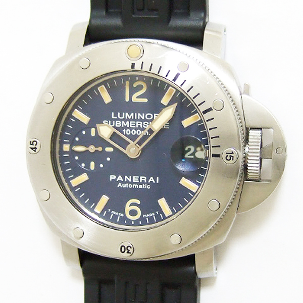 Luminor Submersible 1000 M 專業潛水腕錶/ 型號:PAM-00087/ H 字頭限量200只/採用Panerai OP III 自動上鏈機芯,21石,每小時擺率 28800次,Incabloc防震裝置,動力儲存約42 小時,獲天文台認證/ 具時ˋ分ˋ小秒針ˋ日期顯示/ 可旋轉錶圈可計算入水時間/ 錶殼44mm 316L 磨砂精鋼材質厚度 3 毫米/ 藍寶石水晶鏡面厚度 5.1 毫米/ 深藍錶盤/ 防水深達1000米/ 附原廠黑色膠帶配置原廠折疊式錶扣及原廠尼龍替代用錶帶.