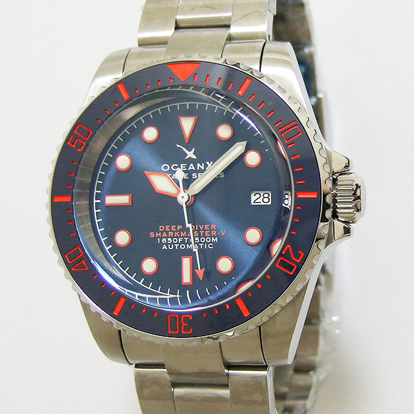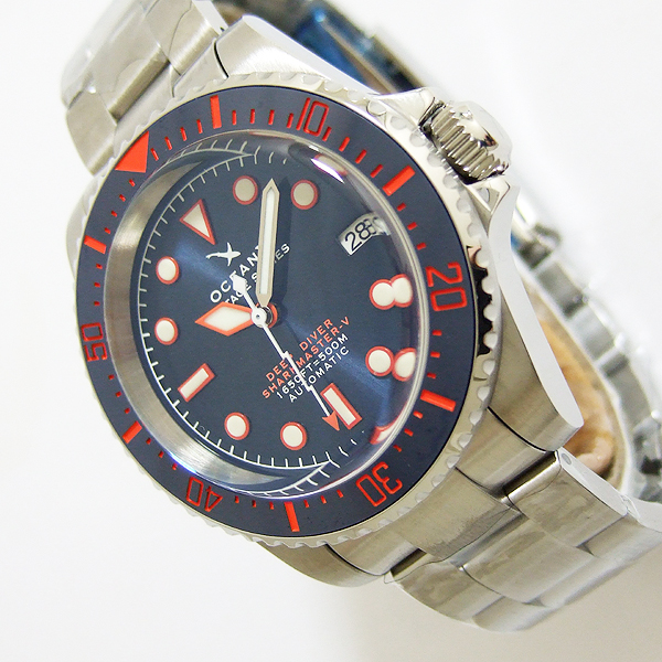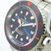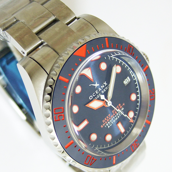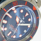 OCEANX 潛水腕錶/ 型號:VSMS561/ 採 SEIKO NH35 自動上鏈機芯,動力儲存約:41小時, 24 顆紅寶石,21600vph/ 金屬光藍色錶盤/ 具時ˋ分ˋ秒及 3 點方位日期視窗/ 橘色邊框夜光時標及白色標誌線時標/ 可單向旋轉藍色搭配橘紅色數字刻度陶瓷潛水錶圈,可計算入水時間/ 手錶尺寸: 42 mm,厚:15.3mm/ 藍寶石水晶玻璃/ 全錶 316 L 鋼材質 / 搭配原廠鋼質鏈帶及折疊式錶扣/ 防水 500 米.