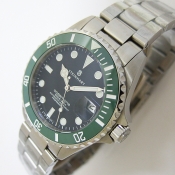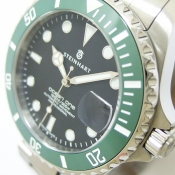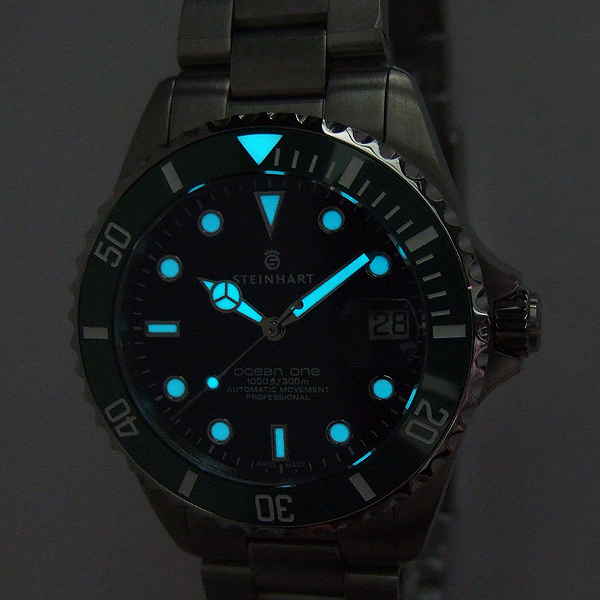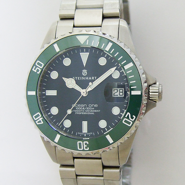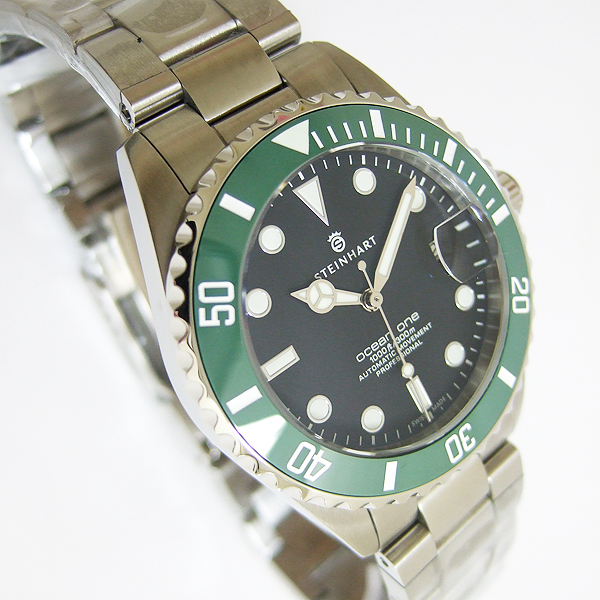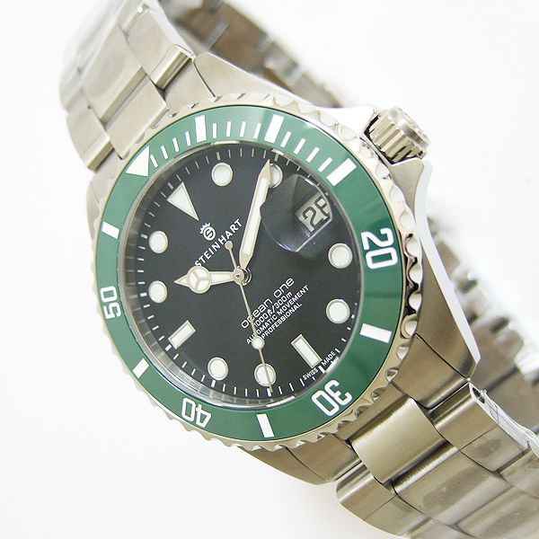 簡述: Steinhart 德國品牌潛水錶/ OCEAN One 39 green ceramic 腕錶/ 型號:103-1044/ 採瑞士自動上鏈機芯, 25 顆紅寶石, 動力儲存:42小時/ 具時ˋ分ˋ秒指示及 3 點方位日期顯示/ 黑色面盤/ 夜光指針及標誌型時標/ 全錶拋霧 316 L 不鏽鋼材質/ 綠色陶瓷材質單向旋轉外圈,可計算入水時間/ 手錶尺寸: 39mm 錶徑,厚:13mm , 重 170 克/ 防炫藍寶石水晶水晶玻璃(3 點方位日期放大鏡)/ 搭配原廠蠔式錶帶及折疊式錶扣/ 防水: 300 米.