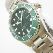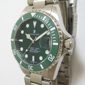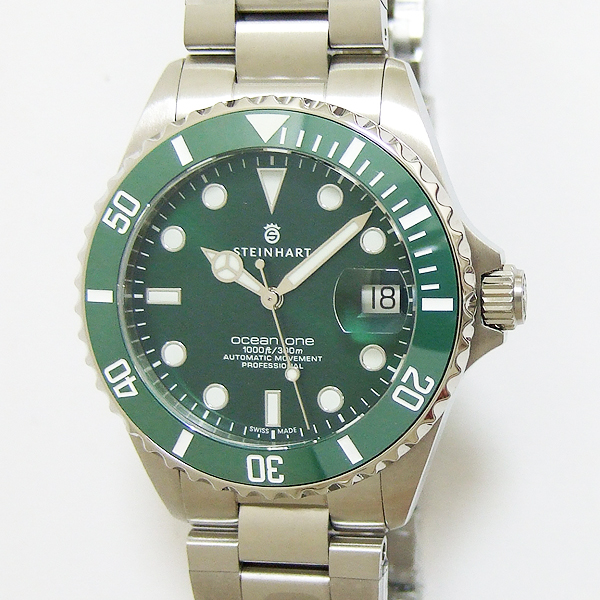 OCEAN One 39 Double- GREEN Ceramic 腕錶/ 型號:103-1065/ 採瑞士ETA 2824-2 自動上鏈機芯, 25 顆紅寶石, 動力儲存約:42小時/ 具時ˋ分ˋ秒指示及 3 點方位日期顯示/ 綠色面盤/ 夜光指針及標誌型時標/ 全錶拋霧或亮 316 L 不鏽鋼材質/ 綠色陶瓷材質單向旋轉外圈,可計算入水時間/ 手錶尺寸: 39mm 錶徑,厚:13mm , 重 170 克/ 防炫藍寶石水晶水晶玻璃(3 點方位日期放大鏡)/ 搭配原廠蠔式錶帶及折疊式錶扣/ 透明錶背/ 防水: 300 米.