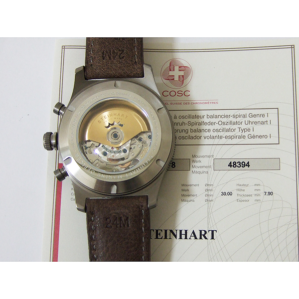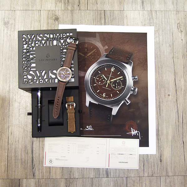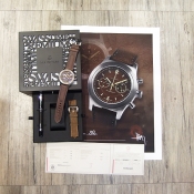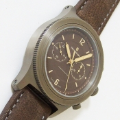 簡述: Marine-Officer 47mm 限量計時碼錶/ 限量 66 只/ 型號:109-0963/ 採瑞士 ETA VALJOUS 7753自動上鏈機芯/ 具時ˋ分ˋ秒指示/ 30分60秒計時碼錶功能/ 巧克力色面盤/ 舊化阿拉伯數字及標誌線時標(具夜光效果)/ 金色指針(具夜光效果)/ 鈦合金材質霧面拋光處理錶殼/ 大型軍錶錶冠/ 手錶尺寸: 47mm 錶徑ˋ厚:14.5mm/ 防眩藍寶石水晶玻璃鏡面(內部邊緣是抗反射的刃角)/ 透明後底蓋/ 搭配 24mm 咖啡色牛皮錶帶/ 原廠一般穿扣/ 日常防水: 50米.