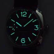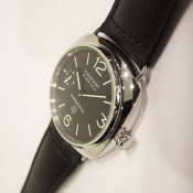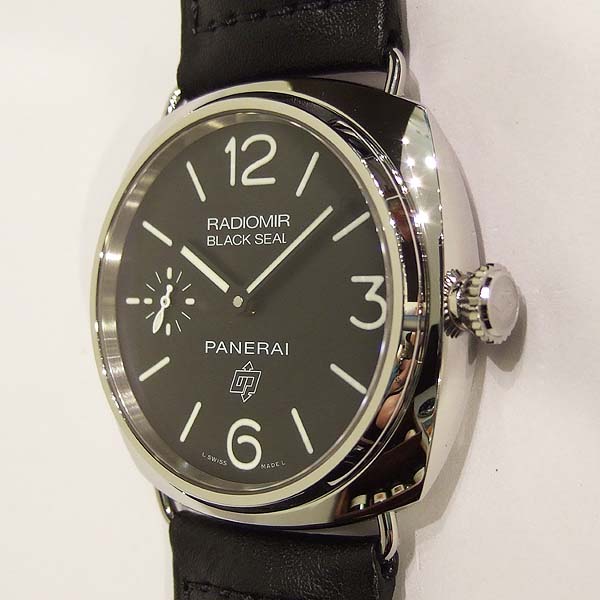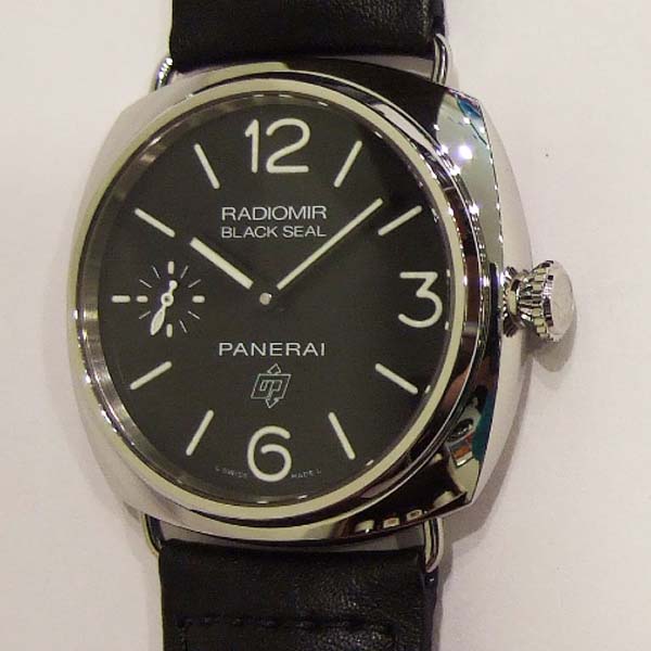 簡述: Radiomir Black Seal 腕錶/ 型號:PAM-00754/ U 字頭限量1000只/ 採用 P 6000手動上鏈機芯/ 機芯為:每小時擺率 21600次ˋIncabloc防震裝置ˋ 動力儲存 3 日ˋ 19 顆紅寶石/ 具時ˋ分ˋ小秒針顯示/ 黑色錶面, 6 點方位 O.P. 字樣(創廠 LOGO)/ 夜光指針及刻度/ 錶殼直徑:45mm,316L 拋光精鋼質/ 搭配原廠黑色牛皮錶帶,大型ㄇ型錶扣/ 藍寶石水晶鏡面/ 防水達100米.