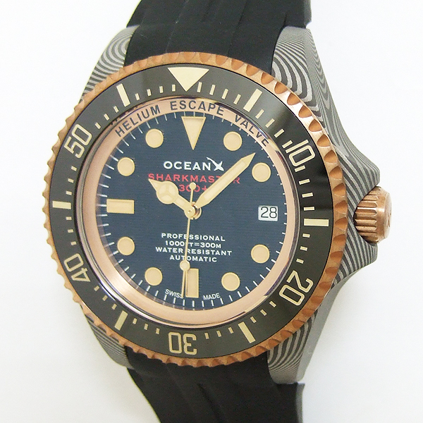 簡述: SHARKMASTER 300+ SWISS MADE 限量特別版潛水腕錶/ 全球限量 99 只/ 型號:SMSB321/ 採瑞士製 ETA 2824-2 自動上鏈機芯,動力儲存約:40小時, 25 顆紅寶石,28800vph/ 黑色鯊魚圖案錶盤/ 具時ˋ分ˋ秒指示,3點方位日期顯示窗/ 夜光立體時標及標誌線時標/ 可單向旋轉綠色陶瓷潛水錶圈,可計算入水時間/ 手錶尺寸: 44 mm,厚:15.6mm/ 藍寶石水晶玻璃/ 大馬士革鋼材質(316+304)&青銅材質,錶殼左側設有排氦氣閥/ 透明底蓋/ 搭配原廠 21 mm 黑色橡膠錶帶及一般式大馬士革鋼材質(316+304)穿扣/ 防水 300 米.