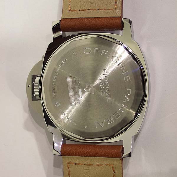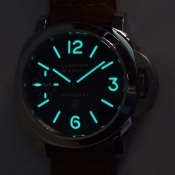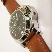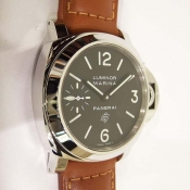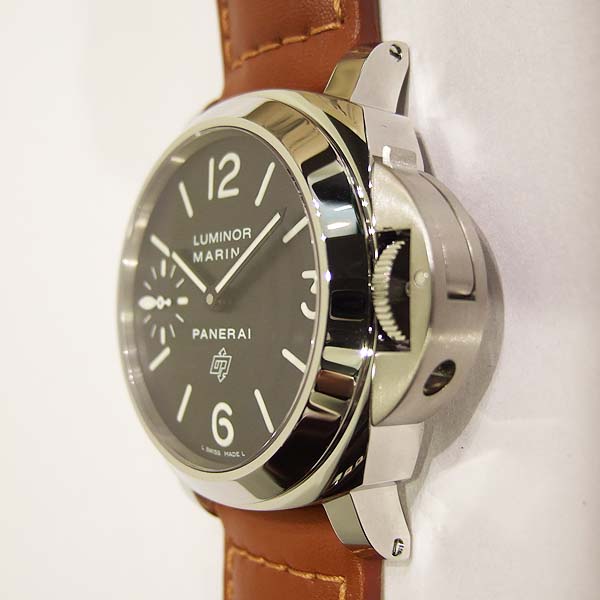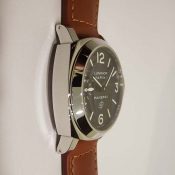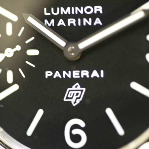 沛納海 Luminor Marina LOGO 系列腕錶/ N 字頭限量 1500 只/ 採 Panerai OP II 手上鏈機芯/ 機芯為:16 1/2法分ˋ17石ˋ單一金屬Glucydur擺輪ˋ每小時擺率21600次ˋIncabloc防震裝置ˋ動力儲存約 56 小時/ 錶殼 44mm 亮面 316L 鋼材質/ 特殊專利龍頭護橋/ 黑色面盤,夜光指針及時標/ 藍寶石水晶玻璃(厚度3.5毫米),具抗反光塗層/ 防水達300米/ 附原廠棕色牛皮錶帶及替代用黑色膠帶各1條方便自行拆換.