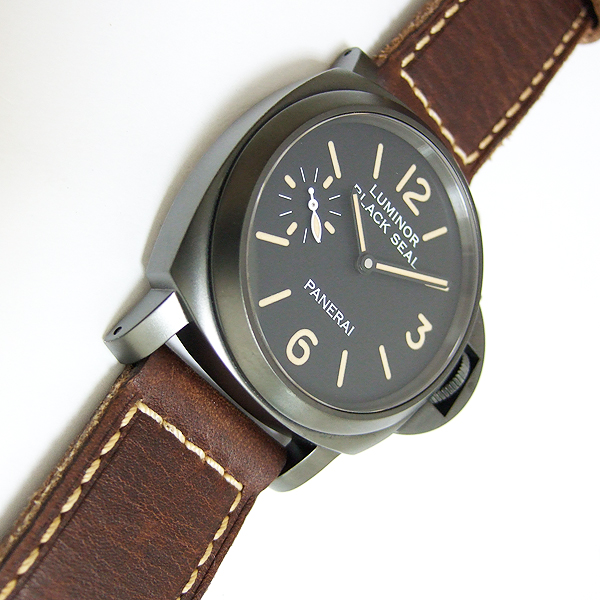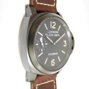 簡述: Luminor 8 Days Black Seck - 44mm 系列腕錶/ 型號:PAM00594/ Q 字頭全球限量500只/ 採Panerai自製 P5000 手上鏈機芯/ 機芯為:15 3/4法分ˋ21石ˋ厚4.5毫米ˋ每小時擺率21600次ˋKIF 防震裝置ˋ動力儲存 8 日ˋ2個發條盒ˋ127個零件/ 黑色面盤/ 舊化夜光時標及指針/ 錶殼 44mm 316L 鋼材質,黑色 DLC塗裝/ 特殊龍頭護橋/ 藍寶石水晶玻璃(厚度2.5毫米)具抗反光塗層/ 透明錶背可見限量編號/ 防水達300米/ 附原廠棕色皮帶,搭配梯形穿扣。
