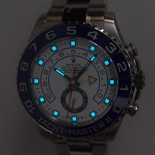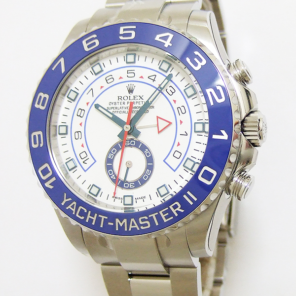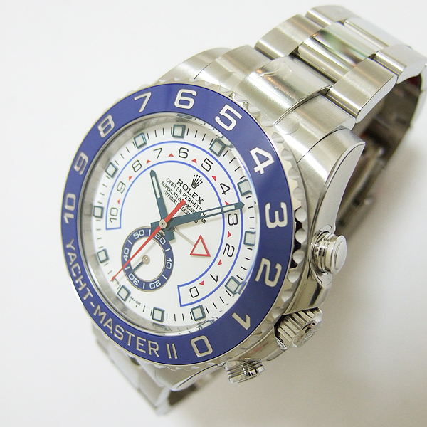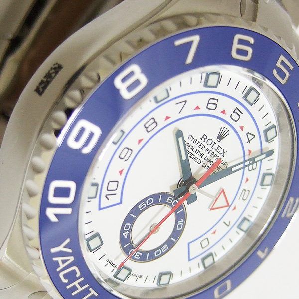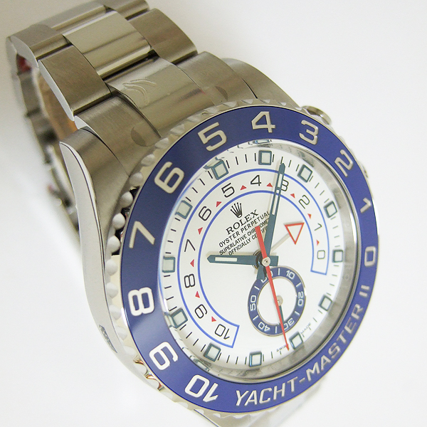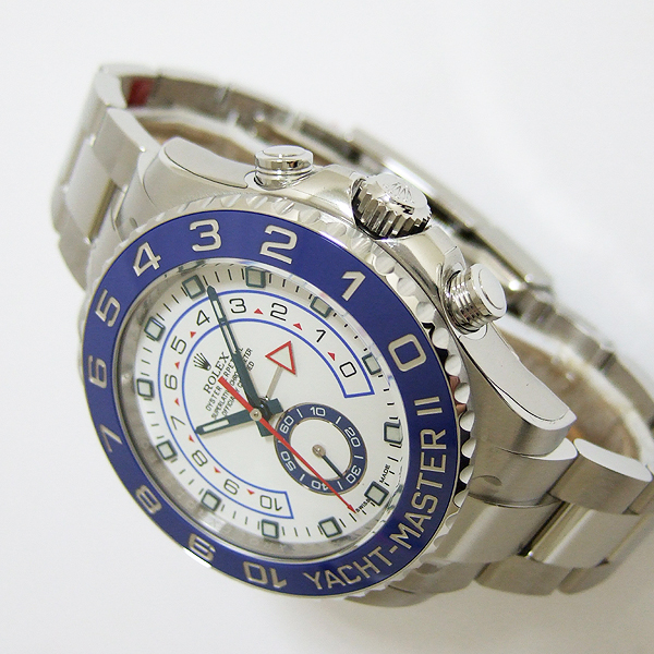 簡述: YACHT-MASTER II 遊艇名仕腕錶/ 型號:116680/ 亂碼字頭/ 採自動上鏈機芯/ 機芯編號:4165機芯為:鍍銠機芯有魚鱗紋及日內瓦波紋打磨,42石,五方位調校,KIF避震裝置,雙層鈮鋯合金游絲(具天文台認證 C.O.S.C),高抗震,抗磁專利Parachrom游絲/ 錶徑:44mm/ 具時ˋ分ˋ秒ˋ10 分鐘到計時指示功能/ 白色面盤,劍型指針,具夜光功能,有防偽刻印錶圈/ 夜光時標及指針/ 單向旋轉式藍色陶瓷錶圈/ 藍寶石水晶玻璃/ 904L不鏽鋼材質原廠鏈帶及折疊式帶扣/ 防水深度達100米.