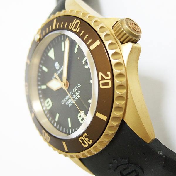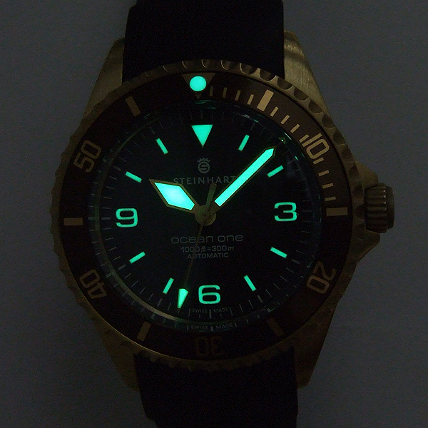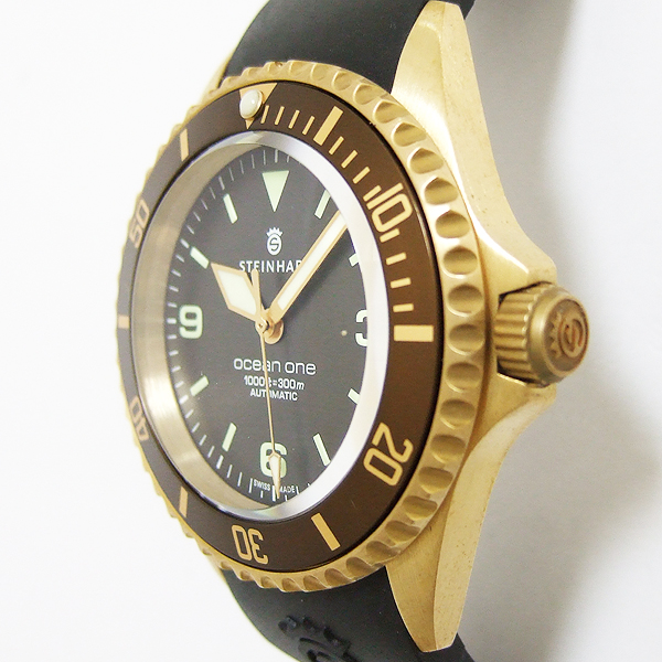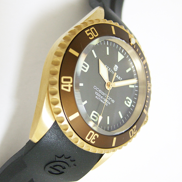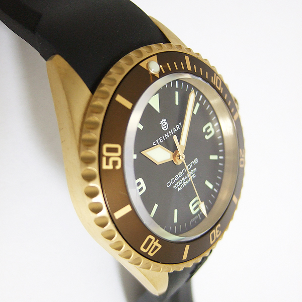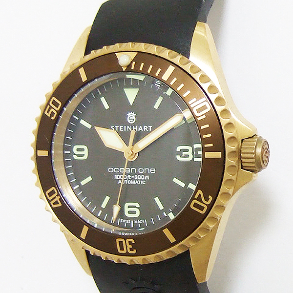 簡述: Steinhart 德國品牌潛水錶/ OCEAN One Bronze DARK-BROWN 腕錶/ 型號:103-0573/ 採瑞士自動上鏈機芯, 動力儲存:42小時/ 具時ˋ分ˋ秒指示/ 深灰色面盤/ 夜光指針及3.6.9及標誌型時標/ 全錶拋霧青銅材質,剛直表底蓋/ 咖啡色發色鋁合金材質刻度單向旋轉外圈,可計算入水時間/ 手錶尺寸: 42mm 錶徑,厚:14mm , 重 139 克/ 防炫藍寶石水晶水晶玻璃/ 搭配原廠表而處密合式黑色橡膠錶帶及折疊式錶扣/ 防水: 300 米.