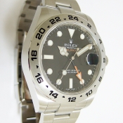 簡述: 蠔式新款 EXPORER II GMT 潛水錶/ 型號:216570/ 亂碼字頭/ 採自動上鏈機芯/ 機芯編號:Cal.3187, 採用新研發藍色arachrom游絲,具抗磁效果,五方位調校,四顆微調快慢螺絲,Paraflex避振裝置,天文台認證(C.O.S.C.)/ 錶徑42mm/ 具時ˋ分ˋ秒針指示及日期顯示,GMT 第 2 地時間指示/ 白色面盤/ 夜光指針及時標/ 黑色阿拉伯數字 24 小時制外圈/ 錶盤內圈刻有一圈防偽ROEX字樣及流水號碼/ 藍寶石水晶玻璃鏡面/ 原廠不繡鋼新式微調式帶扣/ 防水深度潛水達100米.