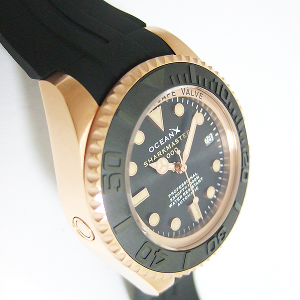 簡述: SHARKMASTER 1000 潛水腕錶/ 型號:SMS1064/ 採 SEIKO NH35 自動上鏈機芯,動力儲存約:41小時, 24 顆紅寶石,21600vph/ 白色暗格紋錶盤/ 具時ˋ分ˋ秒指示,3點方位日期顯示窗/ 冷光藍夜光立體時標及標誌線時標/ 可單向旋轉黑色立體刻度陶瓷潛水錶圈,可計算入水時間/ 手錶尺寸: 44 mm,厚:17.1mm/ 藍寶石水晶玻璃/ 全錶 316 L 鋼材質PVD玫瑰金色,錶殼左側設有排氦氣閥/ 搭配原廠鋼黑色橡膠錶帶及一般式穿扣/ 防水 1000 米.