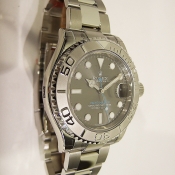 簡述: YACHT-MASTER 蠔式恆動遊艇名仕型腕錶錶/ 型號:126622/ 亂碼字頭/ 採自動上鏈機芯/ 機芯編號:3235, 可靠快調瞬跳日期,順磁性藍色 Parachrom 游絲,Paraflex 緩震裝置,天文台認證(C.O.S.C.)/ 錶徑40mm/ 具時ˋ分ˋ秒針(藍色)指示/ 日期顯示(放大鏡)/ 金屬光灰色面盤, 6 點方位印有藍色YACHT-MASTER 字樣/ 夜光指針及時標/ 鉑金(PT 950)材質刻度漸進式旋轉計時外圈/ 錶盤內圈刻有一圈防偽 ROLEX 字樣及流水號碼/ 藍寶石水晶玻璃鏡面/ 原廠不繡鋼鏈帶及折疊式錶扣.