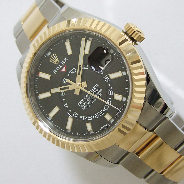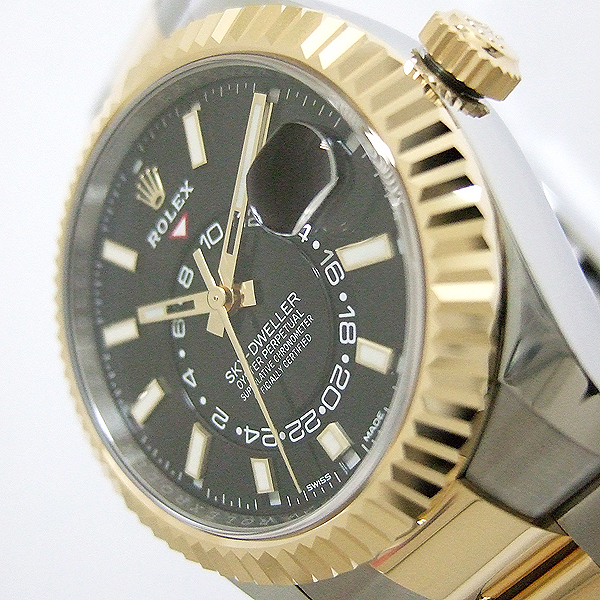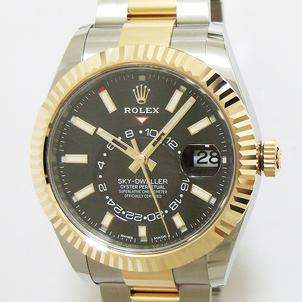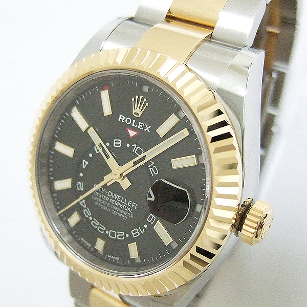 簡述: SKY-DWELLER 天行者年曆腕錶/ 型號:326933/ 亂碼字頭/ 採自動上鏈機芯/ 機芯編號:9001/ 錶徑:42mm/ 具時ˋ分ˋ秒ˋ放大鏡日期顯示,沙羅系統年曆功能,GMT兩地時間時區/ 黑色面盤/ 有防偽刻印錶圈/ 立體夜光時標及指針/ Ring Command 雙向 4 段旋轉18K黃金外圈 / 18K黃金及鋼蠔式鍊帶/ 機芯為:鍍銠機芯有魚鱗紋打磨ˋ雙向自動上鏈ˋ動力儲存 70 小時/ 藍寶石水晶玻璃/ 可微調式帶扣// 可防水100米.
