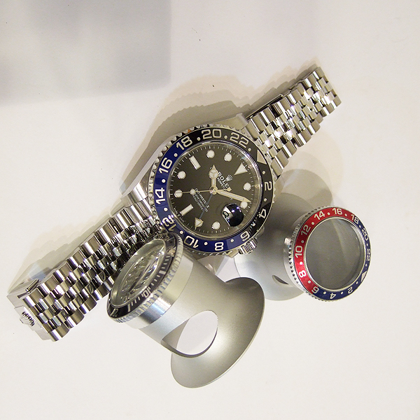 簡述: GMT-MASTER II 格林威治型天文台錶/型號:126710BLNR/ 採自動上鏈機芯/機芯編號:3285/ 機芯全由勞力士研發製作, 共獲得 10 項專利,配置 Chronergy 擒縱系統,動力儲存約 70 小時,,天文台認證(C.O.S.C.)/ 錶徑:40mm/ 具時ˋ分ˋ秒針指示及 3 點方位日期顯示窗,可轉動外圈配 CERACHROM 字圈及24小時指針,可獨立調校的12小時指針,方便同時顯示兩地時間/ 黑色面盤/ 夜光指針及時標/ 黑及藍色雙色陶瓷合金雙向旋轉外圈/ 錶盤內圈刻有一圈防偽 ROLEX 字樣及流水號碼/ 藍寶石水晶玻璃鏡面/ 原廠不鏽鋼紀念型(Jubile)錶帶及折疊式錶扣/ 防水100米.