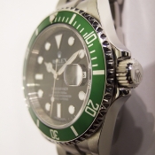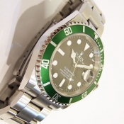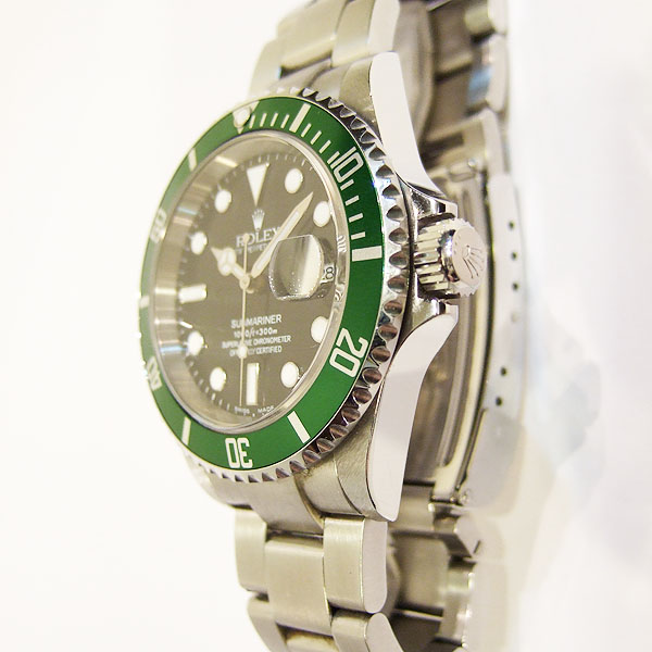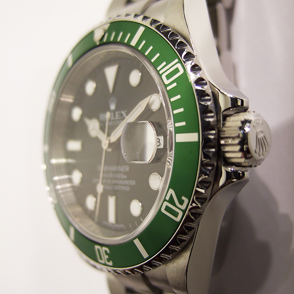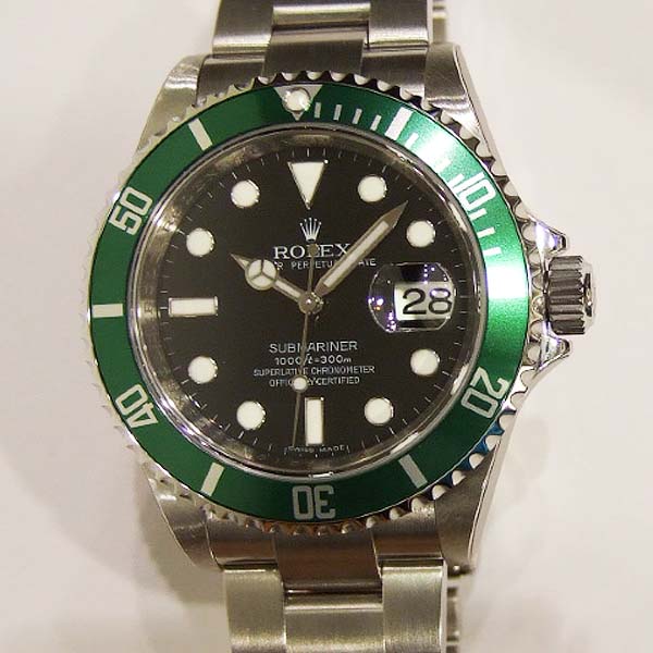 簡述: 蠔式潛水錶/ 型號:16610LV/ 採自動上鏈機芯/ 機芯編號:3135, 採用新研發的寶璣式雙層鈮鋯合金藍色鋼,具抗磁效果,31石,五方位調校,雙層合金游絲,四臂環形合金擺輪,四顆微調快慢螺絲,KIF避振裝置,天文台認證(C.O.S.C.)/ 錶徑:40mm/ 具時ˋ分ˋ秒針指示及 3 點方位日期顯示/ 黑色面盤/ 夜光指針及時標/ 綠色單向旋轉潛水計時外圈,可計算入水時間/ 藍寶石水晶玻璃鏡面/ 原廠不不鏽鋼蠔式錶帶及折疊式錶扣/ 防水300米.