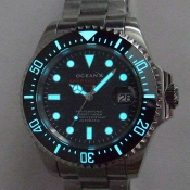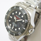 簡述: SHARKMASTER 600 潛水腕錶/ 型號:SMS600-11/ 採 SEIKO NH35 自動上鏈機芯,動力儲存約:40小時, 24 顆紅寶石,21600vph/ 黑色面盤,12點方位有打上 SHARKMASTER 600 紅色字樣/ 具ˋ分ˋ秒指示,3點方位日期顯示窗/ 冷光藍夜光立體時標及標誌線時標/ 可單向旋轉黑色陶瓷潛水錶圈,可計算入水時間/ 手錶尺寸: 44 mm,厚:15mm/ 藍寶石水晶玻璃/ 全錶 316 L 鋼材質/ 搭配原廠鋼質鏈帶及折疊式錶扣/ 防水 600 米.