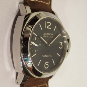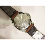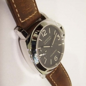 簡述: 沛納海 Luminor Marina 城市限定系列新加坡版/ 型號:PAM 00432/ N 字頭限量 200 只/ 採Panerai OP II 手上鏈機芯/ 機芯為:16 1/2法分ˋ17石ˋ單一金屬Glucydur擺輪ˋ每小時擺率21600次ˋIncabloc防震裝置ˋ動力儲存約 56 小時/ 錶殼 44mm 亮面 316L 鋼材質/ 特殊專利龍頭護橋/ 黑色面盤, 6 點方位有潛艇載具(人豬)浮雕,夜光指針及時標(舊化感處理),錶背刻印有新國克拉碼頭市景/ 藍寶石水晶玻璃(厚度3.5毫米),具抗反光塗層/ 防水達300米/ 附原廠棕色舊化處理牛皮錶帶.