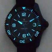 簡述: Steinhart 德國品牌潛水錶/ OCEAN 2 premium Carbon Blue 300米潛水腕錶/ 型號:103-1196/ 採瑞士自動上鏈機芯/ 動力儲存:42小時/ 具時ˋ分ˋ秒指示及日期顯示/ 黑色面盤/ 夜光指針及標誌型時標/ 錶殼為黑ˋ藍紋路碳纖維/ 單向旋轉外圈,可計算入水時間/ 手錶尺寸: 43mm 錶徑,厚:14.5mm, 重:95克 / 防炫藍寶石水晶玻璃/ 搭配原廠錶帶及穿越式針扣/ 防水: 300 米.