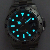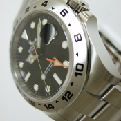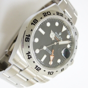 簡述: 蠔式新款 EXPORER II 探險家腕錶/ 型號:226570/ 亂碼字頭/ 採自動上鏈機芯/ 機芯編號:Cal.3285, 採用 Parachrom 游絲,具抗磁效果,五方位調校,Paraflex 避振裝置,天文台認證(C.O.S.C.)/ 錶徑42mm/ 具時ˋ分ˋ秒針指示及日期顯示, 24 時制第 2 地時間指示/ 黑色面盤/ 夜光指針及時標/ 黑色阿拉伯數字 24 小時制外圈/ 錶盤內圈刻有一圈防偽ROEX字樣及流水號碼/ 藍寶石水晶玻璃鏡面/ 原廠不繡鋼新式微調式帶扣/ 防水深度潛水達100米.