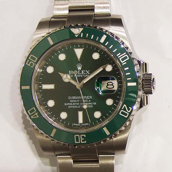 簡述: 蠔式新款陶瓷合金潛水錶/ 型號:116610LV/ 亂碼字頭/ 採自動上鏈機芯/ 機芯編號:3135, 採用新研發的寶璣式雙層鈮鋯合金藍色鋼,具抗磁效果,31石,五方位調校,雙層合金游絲,四臂環形合金擺輪,四顆微調快慢螺絲,KIF避振裝置,天文台認證(C.O.S.C.)/ 錶徑40mm/ 具時ˋ分ˋ秒針指示及日期顯示/ 綠色面盤/ 夜光指針及時標/ 綠色陶瓷合金單向旋轉潛水計時外圈/ 錶盤內圈刻有一圈防偽ROEX字樣及流水號碼/ 藍寶石水晶玻璃鏡面/ 原廠不繡鋼新式微調式帶扣/ 防水深度潛水達300米.