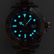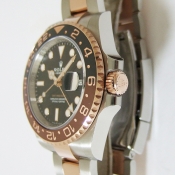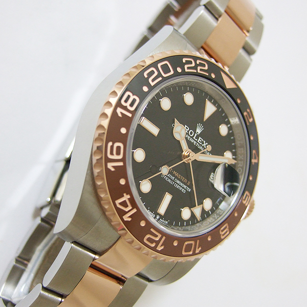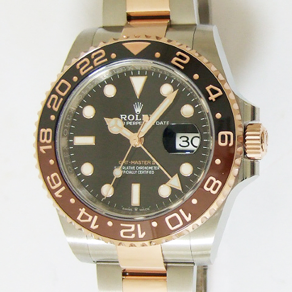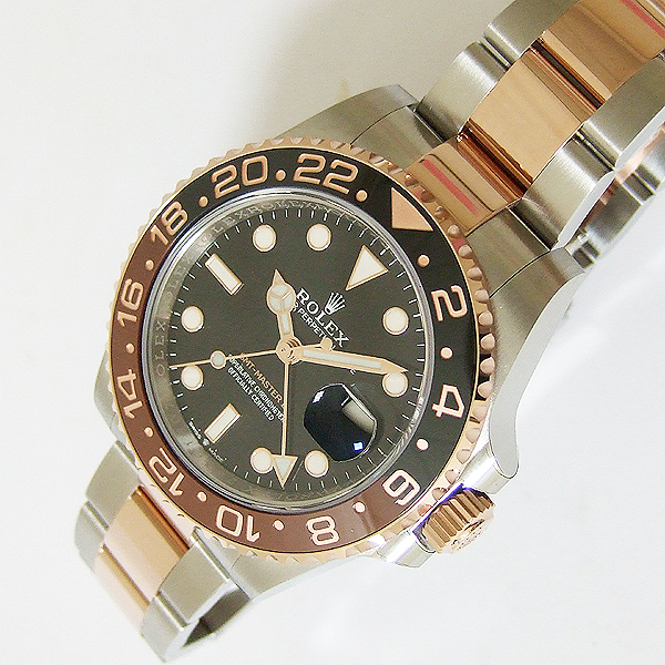 簡述: GMT-MASTER II 格林威治型天文台錶/型號:126711CHNR/ 採自動上鏈機芯/機芯編號:3285/ 機芯全由勞力士研發製作, 共獲得 10 項專利,配置 Chronergy 擒縱系統,動力儲存約 70 小時,,天文台認證(C.O.S.C.)/ 錶徑:40mm/ 具時ˋ分ˋ秒針指示及 3 點方位日期顯示窗,可轉動外圈配 CERACHROM 字圈及24小時指針,可獨立調校的12小時指針,方便同時顯示兩地時間/ 黑色面盤/ 夜光指針及時標/ 黑及咖啡色雙色陶瓷合金雙向旋轉外圈/ 錶盤內圈刻有一圈防偽 ROLEX 字樣及流水號碼/ 藍寶石水晶玻璃鏡面/ 原廠 904L 不鏽鋼及 18 K玫瑰金錶帶及折疊式錶扣/ 防水100米.