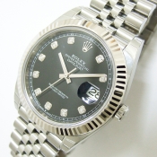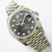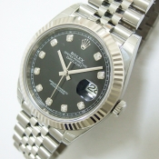 簡述: 勞力士蠔式 DATEJUST 41腕錶/ 型號:126334-0012/ 亂碼字頭/ 採自動上鏈機芯/ 機芯編號:3235, 採用新研發的 CHRONERGY 擒縱系統,五方位調校,配備 PARACHROM游絲的平衡擺輪,四臂環形合金擺輪,四顆微調快慢螺絲,KIF避振裝置,天文台認證(C.O.S.C.)/ 錶徑41mm/ 具時ˋ分ˋ秒針指示及日期放大鏡顯示/ 黑色金屬光面盤搭配包鑲鑽石刻度/ 銀色指針/ 錶盤內圈刻有一圈防偽 ROLEX 字樣及流水號碼/ 藍寶石水晶玻璃鏡面, 3 點方位設有放大鏡/ 18K白金太陽錶圈/原廠不鏽鋼五株式鏈帶及折疊式錶扣/ 防水達 100 米.