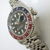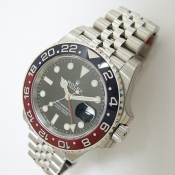簡述: GMT-MASTER II 格林威治型天文台錶/型號:126710BLRO/ 採自動上鏈機芯/機芯編號:3186/ 機芯採用新研發的寶璣式雙層鈮鋯合金藍色鋼,31顆紅寶石, 五方位調校,雙層合金游絲,有四顆微調快慢螺絲,橫跨式擺輪橋板,KIF避振裝置,天文台認證(C.O.S.C.)/ 錶徑:40mm/ 具時ˋ分ˋ秒針指示及 3 點方位日期顯示窗,可轉動外圈配 CERACHROM 字圈及24小時指針,可獨立調校的12小時指針,方便同時顯示兩地時間/ 黑色面盤/ 夜光指針及時標/ 紅及藍色雙色陶瓷合金雙向旋轉外圈/ 錶盤內圈刻有一圈防偽 ROLEX 字樣及流水號碼/ 藍寶石水晶玻璃鏡面/ 原廠不鏽五珠式錶帶及折疊式錶扣/ 防水100米.