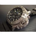 簡述: Luminor Submersible Chrono 1000 M 專業潛水計時碼錶/ 型號:PAM00187/ G 字頭全球限量 1000 只錶款/ 用Panerai OP XII 自動上鏈機芯/ 13 1/4 法分/ 27石/ 具時.分.秒指示/ 計時碼錶功能/ 日期視窗/ 錶殼 47mm 磨砂精鋼材質/藍寶石水晶鏡面/ 專利特殊龍頭護橋/ 防水深達1000米/ 附原廠黑色膠帶及專業級潛水用尼龍錶帶. 1000 米專業潛水計時碼錶真正彰顯了 PANERAI 與海洋密不可分的相依關係.