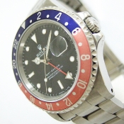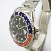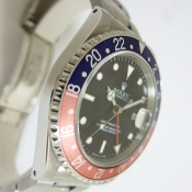 簡述: GMT-MASTER II 格林威治型天文台錶/型號:16700/ 採自動上鏈機芯/機芯編號:3175,31顆紅寶石,動力儲存: 48 小時,避振裝置,天文台認證(C.O.S.C.)/ 錶徑:40mm/ 具時ˋ分ˋ秒針指示及 3 點方位日期顯示窗,可轉動外圈及 24 小時指針,可獨立調校的12小時指針,方便同時顯示兩地時間/ 黑色面盤/ 夜光指針及時標/ 紅及藍色雙色鋁合金雙向旋轉外圈/ 藍寶石水晶玻璃鏡面/ 原廠不鏽鋼蠔式錶帶及折疊式錶扣/ 防水100米.