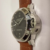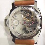 簡述: Luminor Marina 系列/ 型號:PAM00111/ P 字頭限量1700只/ 採Panerai OP XI 手上鏈機芯/ 機芯為:16 1/2法分ˋ17石ˋ單一金屬Glucydur擺輪ˋ每小時擺率21600次ˋIncabloc防震裝置ˋ動力儲存約56小時/ 黑色 3 明治面盤/ 夜光時標及指針/ 錶殼 44mm 亮面316L 鋼材質/ 特殊專利龍頭護橋/ 藍寶石水晶玻璃(厚度3.5毫米)/ 抗反光塗層/ 透明錶背可見日內瓦波紋打磨/ 防水達300米/ 附原廠棕色牛皮錶帶及黑色膠帶各1條方便自行拆換.