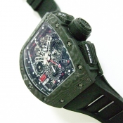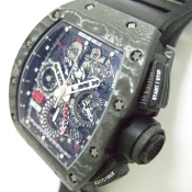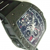 簡述: RICHARD MILLE / 型號:RM011-02/ 全球限量 88 只/ 採用自動上鏈機芯,動力儲存 50 小時/ 具時ˋ分ˋ小秒針ˋ大日期顯示ˋ計時碼錶功能含飛返計時,第 2 地時間指示/ 錶殼: 50 X 42.7mm/ 鏤空面盤/ 夜光時標/ 藍寶石水晶鏡面/ 透明錶背/ 防水達 50米/ 折疊式型錶扣/ 原廠黑色膠帶.