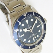 簡述: TUDOR 帝舵潛水腕錶/ 型號:79030B/ 採原廠自製 MT5602 自動上鏈機芯,動力儲存約:70小時,獲C.O.S.C.天文台精準認證,雙向上鏈系統/ 藍色錶盤/ 具時ˋ分ˋ秒指示/ 銀邊框時標及標誌線時標(具夜光功能)/ 銀邊框雪花型指針/ 可單向旋轉藍色潛水錶圈,可計算入水時間/ 錶徑尺寸: 39 mm/ 藍寶石水晶玻璃/ 全錶 316 L 鋼材質/ 搭配原廠鉚釘鋼質鏈帶及折疊式錶扣/ 旋入式錶冠,刻有帝舵玫瑰標誌/ 防水 200 米.