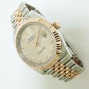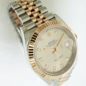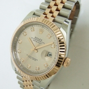 簡述: 勞力士蠔式 DATEJUST 41蠔式恆動日誌型腕錶/ 型號:126331/ 亂碼字頭/ 採自動上鏈機芯/ 機芯編號:3235, 採用 PARACHROM游絲的平衡擺輪,四臂環形合金擺輪,四顆微調快慢螺絲,KIF避振裝置,天文台認證(C.O.S.C.),動力儲存 72 小時, 31 石/ 錶徑41mm/ 具時ˋ分ˋ秒針指示及日期放大鏡顯示/ 粉金色金屬光面盤搭配刻度/ 指針/ 錶盤內圈刻有一圈防偽 ROLEX 字樣及流水號碼/ 藍寶石水晶玻璃鏡面, 3 點方位設有放大鏡/ 原廠不銹鋼及18K玫瑰金 5 珠帶折疊式錶扣/ 防水達 100 米.