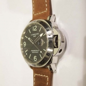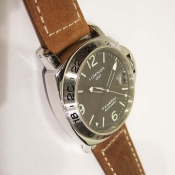 簡述: Luminor GMT 2 地時間錶/型號:PAM00029/ B 字頭限量500只/ 機蕊為ETA 2893/2 自動上鏈機械式機蕊為基礎,經 PANERAI 精心加工製成,11又1/2法分,21石,錶橋刻有PANERAI字樣,單一金屬 Glucydur 擺輪,震頻28800,42小時動能儲存,天文台認證/ 具時.分.秒.日期及第 2 地時間顯示功能/ 錶徑:44 mm/ 錶殼 316L 精鋼製成/ 錶圈經典 24 時制第 2 地時間刻度/ 少見黑色直條紋面盤/ 夜光時標.指針/ 藍寶石水晶玻璃,厚3.5毫米,抗反光塗層/ 防水300米(此數據供參考用).