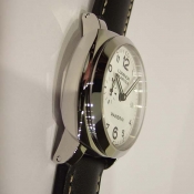 Luminor 1950 Marina 3 Day 自動腕錶/ 型號:PAM-00499/ Q 字頭限量 1000 只(可快拆式錶帶)/ 採用Panerai P.9000 自動上鏈機芯/ 機芯為:13 3/4 法分ˋ 28石ˋ 每小時擺率 28800次ˋ Incabloc防震裝置ˋ 動力儲存 3 日/ 具時ˋ分ˋ小秒針ˋ日期顯示/ 錶殼44mm 316L 拋光及霧鋼材質/ 白色錶面,阿拉伯數字時標/ 夜光時標及指針/ 藍寶石水晶鏡面/ 防水達300米/ 原廠ㄇ型扣(一般扣)/ 附原廠黑色膠帶及黑色牛皮錶帶. |