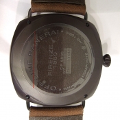 Radiomir Composite Marina Militare 8 Giorni 限量腕錶/ 型號:PAM-00339/ M 字頭僅製作1500只/ 採自製編號:P.2002/7 手上鏈機芯,3 個發條盒,完全由 PANERAI研製/ 具時ˋ分ˋ小秒指示/ 暗棕色(菸草色)面盤/ 3 點方位 8 Giorni BREVETTATO 字樣/ 夜光指針及時標/ 具 8 天動力儲存/ 錶徑: 47 mm/ 陶化鋁錶殼/ 藍寶石水晶玻璃鏡面/ 防水達100米/ 搭配原廠身咖啡色作舊牛皮錶帶/ ㄇ型(普通型)扣頭. |