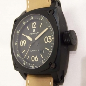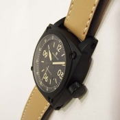 Aviation Automatik 系列/ 型號:104-0383 / 採瑞士 ETA 2824-2 自動上鏈機芯/ 動力儲存:42小時/ 具時ˋ分ˋ秒指示/ 4~5點間日期視窗/ 黑色面盤/ 阿拉伯數字及標誌線時標/ 夜光指針/ 手錶尺寸: 44mm 錶徑,厚:14.8mm,重:137克/ AR 塗層的半球形的藍寶石水晶玻璃/ 底蓋刻有螺旋槳圖樣/ 搭配 24mm 原皮色皮錶帶/ ㄇ字型鋼質錶扣/ 防水: 30米. |