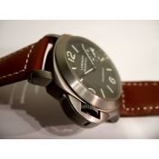 簡述: 沛那海 Luminor Mamino 左手錶(左撇子)/ 停產錶款/ 型號:PAM-00056/ C 字頭限量 500 只/ 採用Panerai OP II 手上鏈機芯/ 機芯為:16 1/2法分ˋ17石ˋ錶橋刻 PANERAI 字樣ˋ每小時擺率21600次ˋIncabloc防震裝置ˋ動力儲存41小時/ 具時ˋ分ˋ小秒針時間指示/ 錶殼44mm 磨砂鈦合金材質/ 碳泥色面盤/ 夜光指針及時標/ 藍寶石水晶鏡面/ 特殊龍頭護橋/ 防水達300米/ 附替代用咖啡色牛皮錶帶.